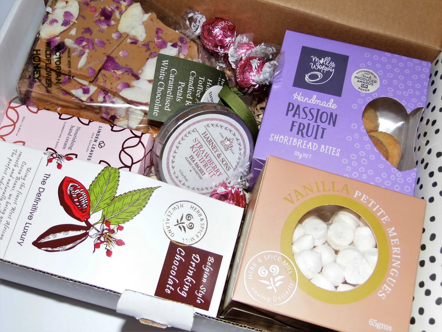 Simply leave your message to your recipient at checkout in the 'message requests' box at checkout or on the gift box page with the gift message text box. The postcard can fit up to 50 words and will be written in black ink pen. We can also leave the postcard blank if you prefer to fill it out yourself and you are not delivering direct to the recipient. Gift boxes also have the option of a gift tag message attached.